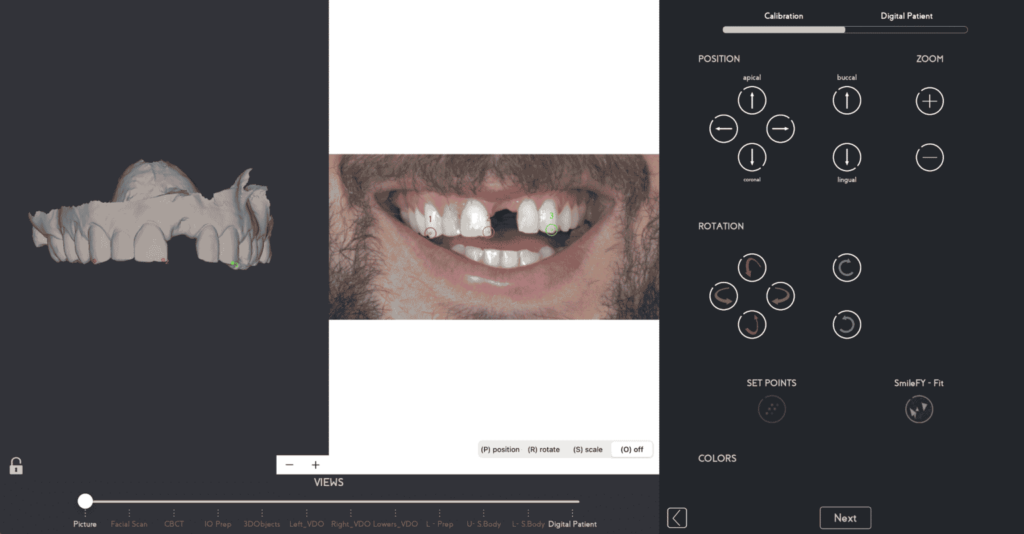 You upload the patient’s photo and the upper and lower arch and superimpose (calibrate) them to begin your facially generated reversed treatment plan. (Fig.1)