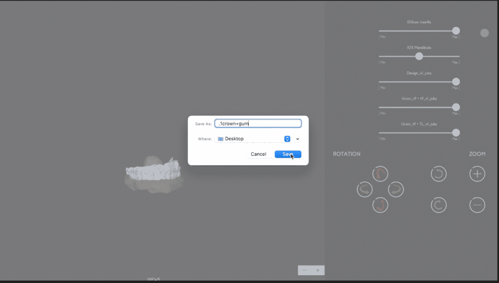– When saving it, make sure to save it in occlusion to upload the files into SmileFy without including the bite registration files.