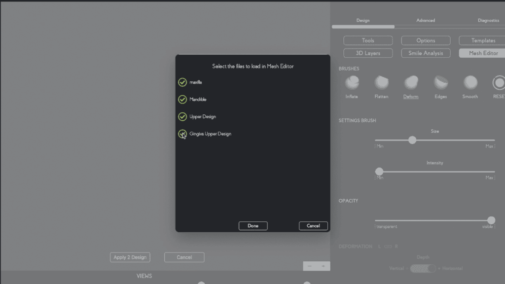 ( Fig. 7 – Fully customize the 3D gingiva according to each individual case using the digital brushes)