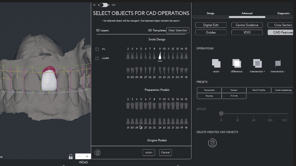 (Fig. 8A Union Feature [Fuse], available on SmileFy – The tooth and the artificial gingiva file)