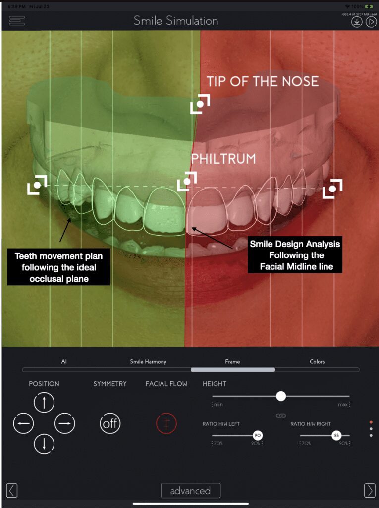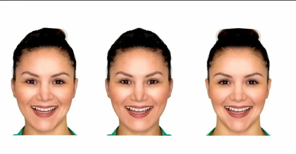 Most of us have faces that are not symmetrical with the patterns given from scientific articles. This is due to proper genetic functions, posture, or habits. Thus, focusing only on the oral cavity can lead to a mismatch in harmony between the smile and the face and future occlusal balance due to lack of attention on the face. See the example below: