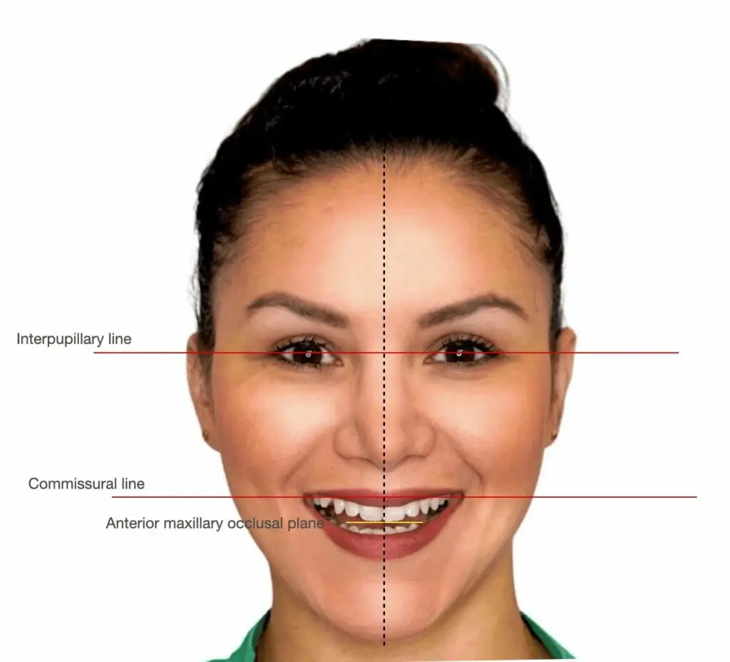 [Figure 2] The interpupillary line should be perpendicular to the midline of the face and parallel to the occlusal plane from an anterior view.