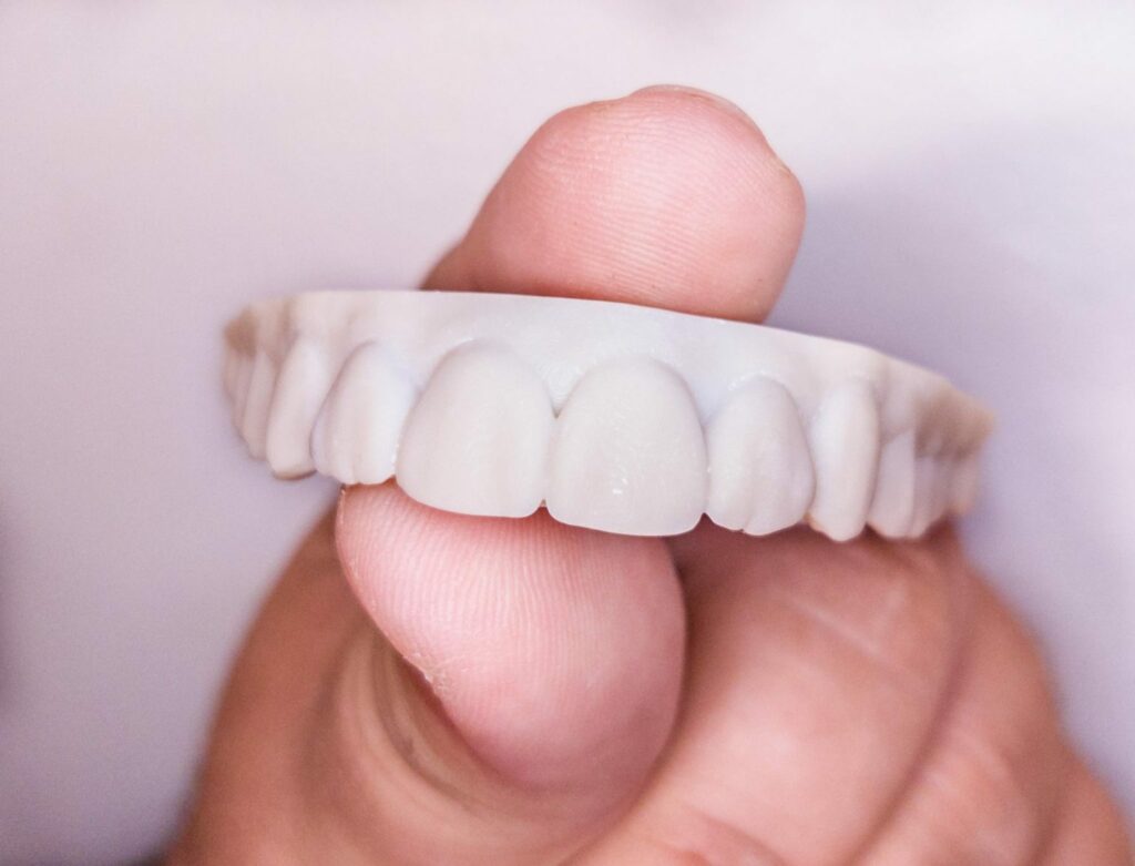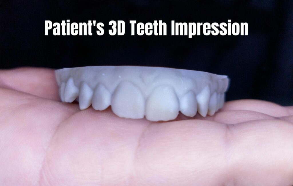 The 3D design goes over the patient’s existing teeth